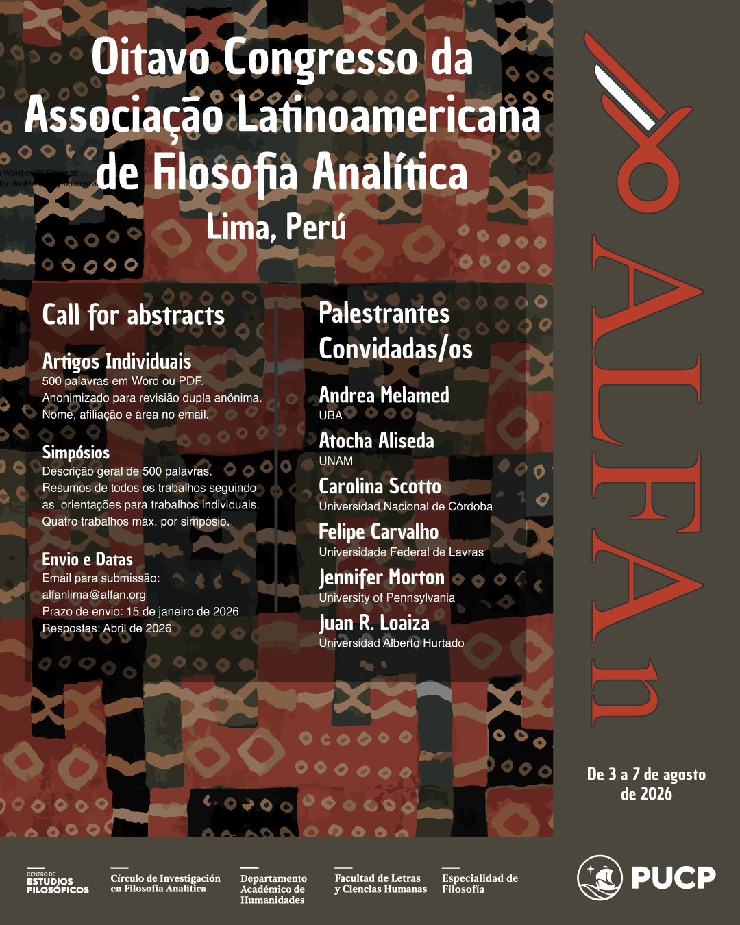 A Asociación Latinoamericana de Filosofía Analítica (ALFAn) organiza uma conferência bianual para compartilhar nossa pesquisa no campo da filosofia analítica. Acadêmicos de diferentes países da América Latina e do mundo, bem como alunos de doutorado, mestrado e graduação, participam de nossa conferência. Convidamos a submissão de resumos para apresentações individuais e simpósios, e convocamos palestrantes plenários para compartilhar seus avanços de pesquisa e promover a filosofia analítica na região.